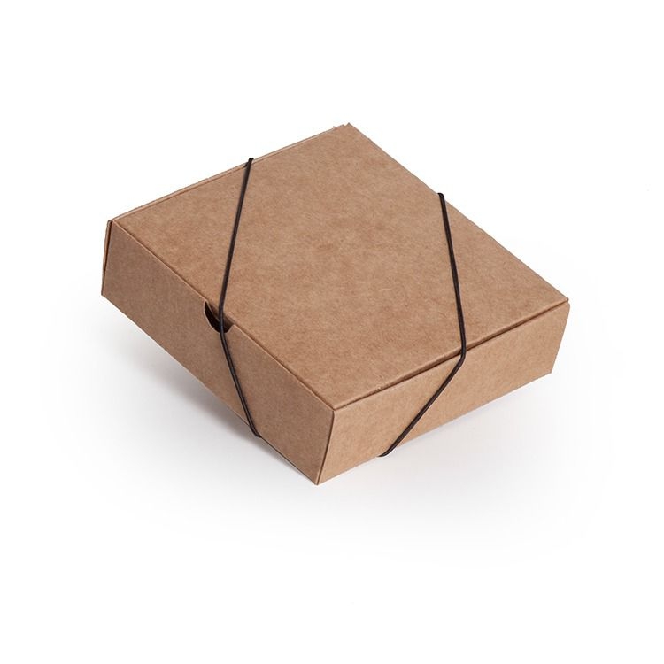 Caixa e berço corte e vinco em papel cartão kraft 400g com elástico preto para fechamento da caixa.15x14x4cm (foto ilustrativa) só embalagem não acompanha produtos. F122
