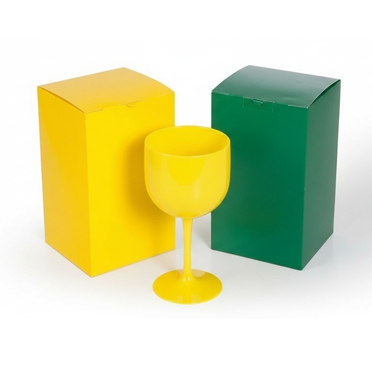 1 Taça de acrilico amarela para gin 580ml 1 Caixa em papel cartão corte e vinco na cor verde ou amarela 200gr Personalizamos com sua logomarca, consulte! 12x13x22.5cm / Peso 0150gr F98