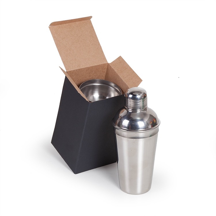 Caixa corte e vinco sem visor em papel cartão preto 400gr 9.8x9.8x18cm Foto ilustrativa não acompanha coqueteleira F525